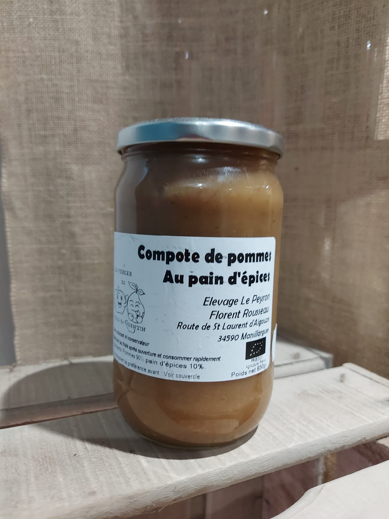 Compote pomme pain d’épice (650g) – BIO – Elevage le Peyron HERAULT
