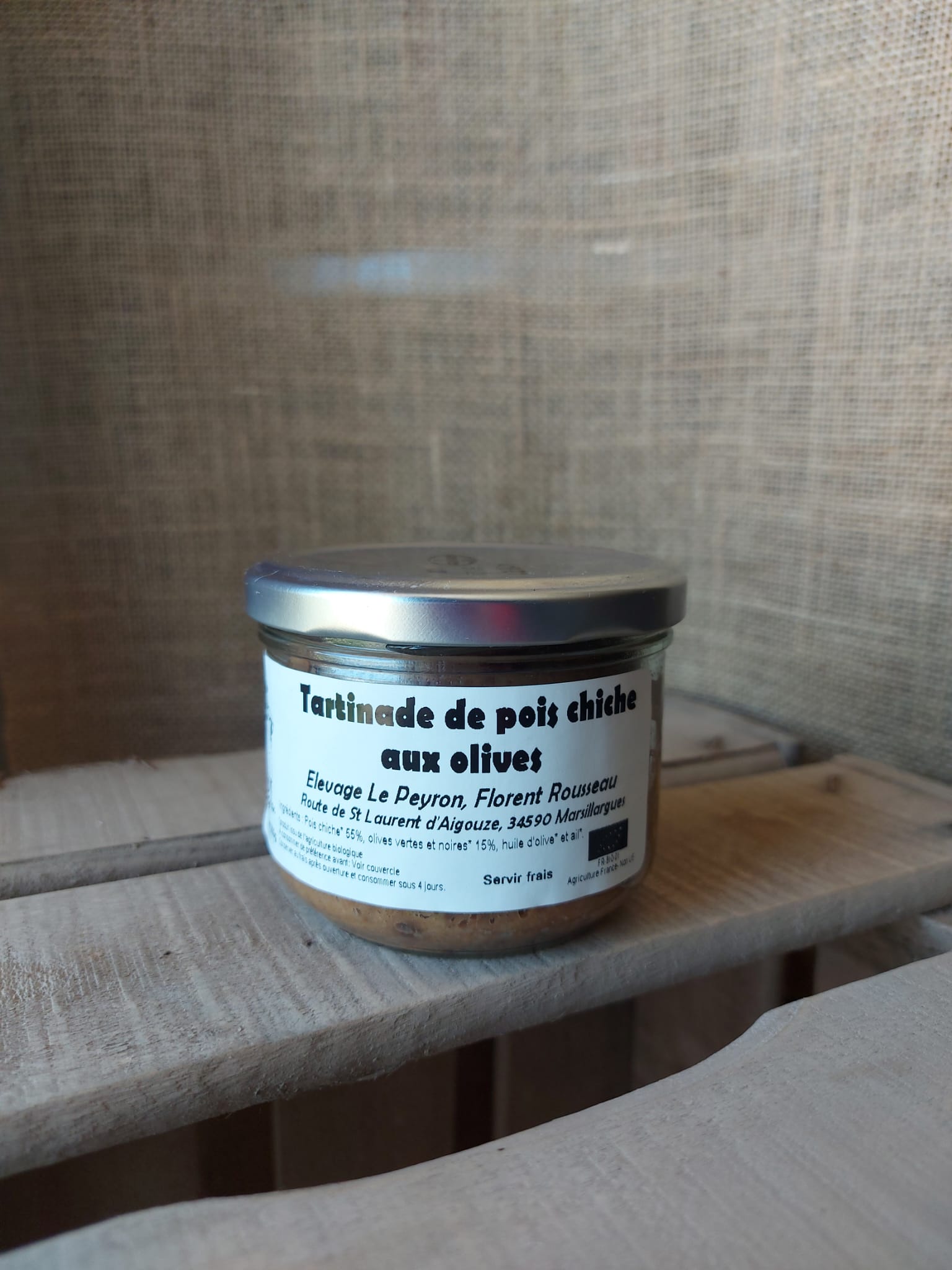 Tartinade de pois chiche aux olives bio 200 g de l’élevage le Peyron (34 – Hérault)